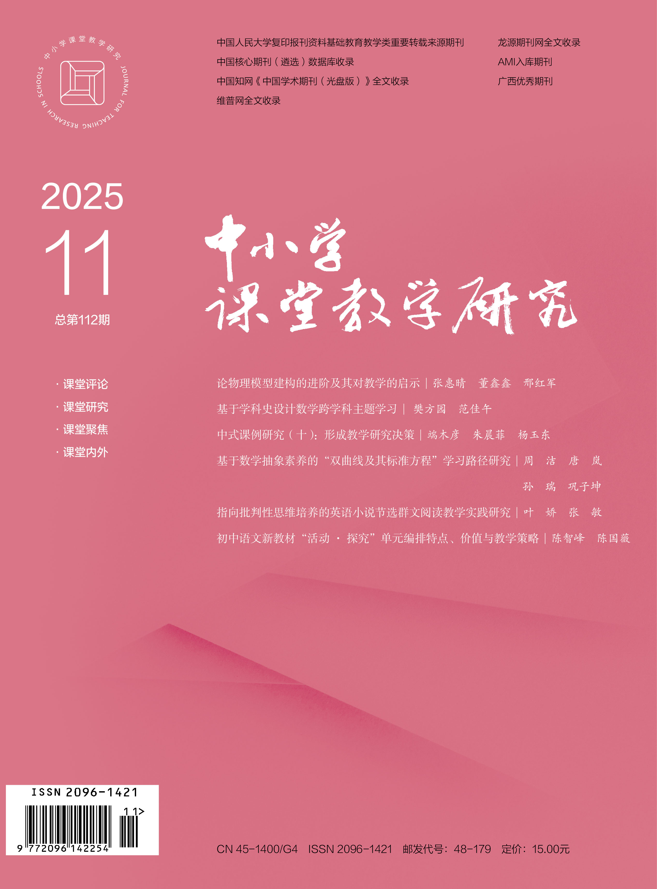 超越单纯的知识教学与技能训练已逐步成为数学教师的共识,深度学习理念在此背景下应运而生。聚焦学科一般观念,正是促进学生深度学习、发展其核心素养的重要途径。文章指出,一般观念引领下数学教学设计需遵循两大策略:一是研读课程标准与教材,提炼学科一般观念;二是设计有效的任务与问题,以一般观念引领教学。同时,以“椭圆的简单几何性质”教学为例,具体阐明聚焦学科一般观念、促进学生深度学习的数学教学实施路径。